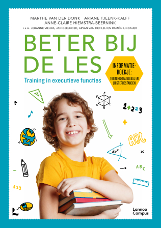 Kinderen met ADHD en/of leerproblemen hebben op school vaak problemen met het werkgeheugen, plannen en controleren: dat worden ook wel 'executieve functies' genoemd, de regelfuncties van het brein. Deze functies spelen een cruciale rol bijhet leren en zijn dan ook voorspellend voor leerprestaties. Met de training van Beter bij de les krijgen kinderen op school meer inzicht in hun leergedrag. Het kind wordt getraind om naar het eigen functioneren te kijken, zodat het zichzelf uiteindelijk zo veel mogelijk zelfstandig kan bijsturen. Naast het aanleren van leerstrategieën ten aanzien van aandacht, planning, werkgeheugen, doel- en taakgericht gedrag en metacognitie, wordt ook het werkgeheugen getraind met de oefeningen.Beter bij de les is bedoeld voor kinderen op de basisschool vanaf 8 jaar en bestaat uit een: - Werkboek - Handleiding en- Trainingsmateriaal en luisterbestanden. De leerkracht wordt actief betrokken bij de training en krijgt hierdoormeer inzicht in het leergedrag van de leerling dat ontstaat door executieve functieproblemen. Hierdoor kan de leerkracht eerder doelgericht ingrijpen en de juiste ondersteuning bieden. Kinderen werken onder begeleiding van een Beter bij de les-coach. Het materiaal is ontwikkeld door een projectteam van de Bascule, academisch centrum voor kinder- en jeugdpsychiatrie in samenwerking met het Academisch Medisch Centrum (AMC) en is bewezen effectief.