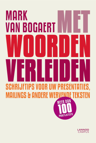 Hoe stopt u kracht in uw wervende teksten? Hoe zorgt u voor positieve aandacht? Hoe motiveert u uw lezer om te doen wat u vraagt? In Met woorden verleiden geeft Mark Van Bogaert (winnaar Gouden Veer 2014 voor de beste Verkoopbrief) u een hoogst persoonlijke inkijk in de interne keuken van de copywriter. Ontdek de direct bruikbare schrijftips in zijn typisch zwierige en humoristische stijl. Schrijftips die u extra aandacht en extra respons garanderen. De verrassende tests in het boek bewijzen dat de tips werken voor mailings, advertenties, onlineteksten. Maar de dialoogmethode versterkt ook andere soorten teksten: van persbericht over PowerPointpresentatie tot zelfs het verslag van uw vergadering of uw bedrijfsblad.