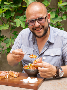 Stefaan Daeninck is de eigenaar en het culinaire brein van Culinair Ateljee, een culinair marketing en ontwikkelingsbureau. Hij is dagelijks met voeding bezig als productontwikkelaar en conceptbegeleider. Daarnaast geeft hij opleidingen voor sales- en marketingteams binnen de voedingssector, zowel in het binnen- als in het buitenland. Als vaste foodstylist voor meerdere voedingsbedrijven kun je zijn recepten en creaties terugvinden in verschillende magazines, vaktijdschriften, verpakkingen en talrijke gespecialiseerde websites.