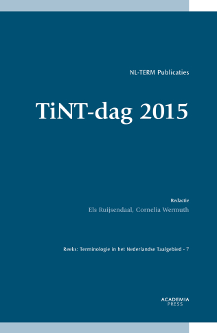 Een uitgave van de Vereniging NL-Term en Steunpunt Nederlandse Terminologie (SNT) Dit boek bevat de lezingen van de TiNT-dag 2015. Het is een initiatief van NLTerm (Vereniging voor Nederlandstalige Terminologie) en Steunpunt Nederlandse Terminologie (SNT). De redactie van deze bundel berust bij Els Ruijsendaal en Cornelia Wermuth. Aan de bundel leverden de volgende auteurs achtereenvolgens een bijdrage: Willy Martin, Wouter Pas en Jeroen Van Nieuwenhove, Jef Malliet,Ingrid van Gent, Hennie van der Vliet en Els Levefer.